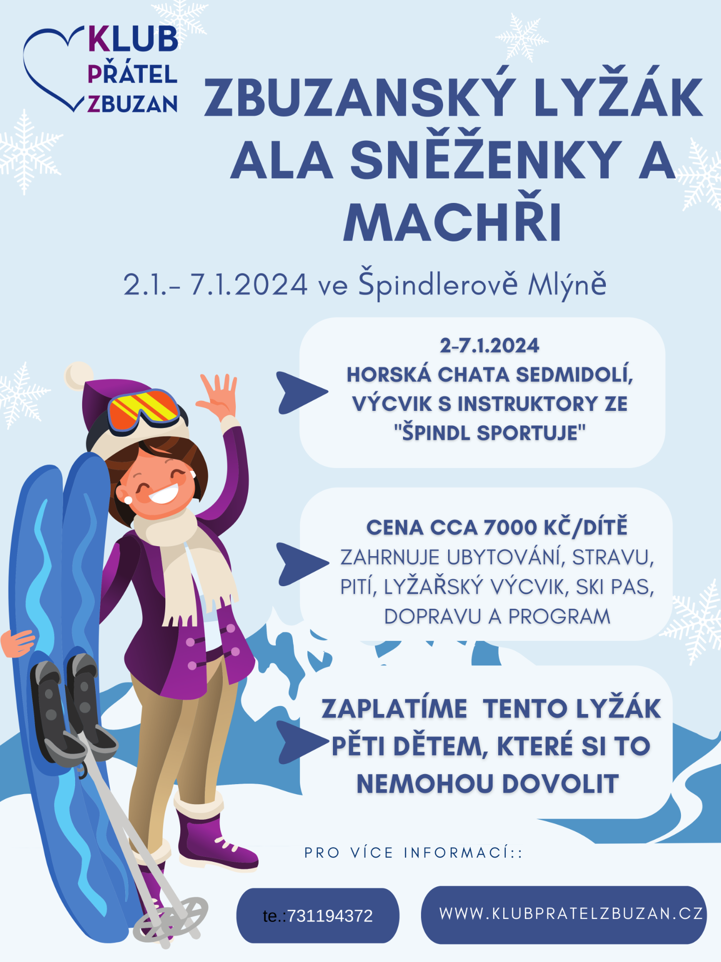 výcvik, skipas, ubytování, dopravu, odpolední program pro děti. Odpolední program pro děti zajistí spolek KPZ spolu