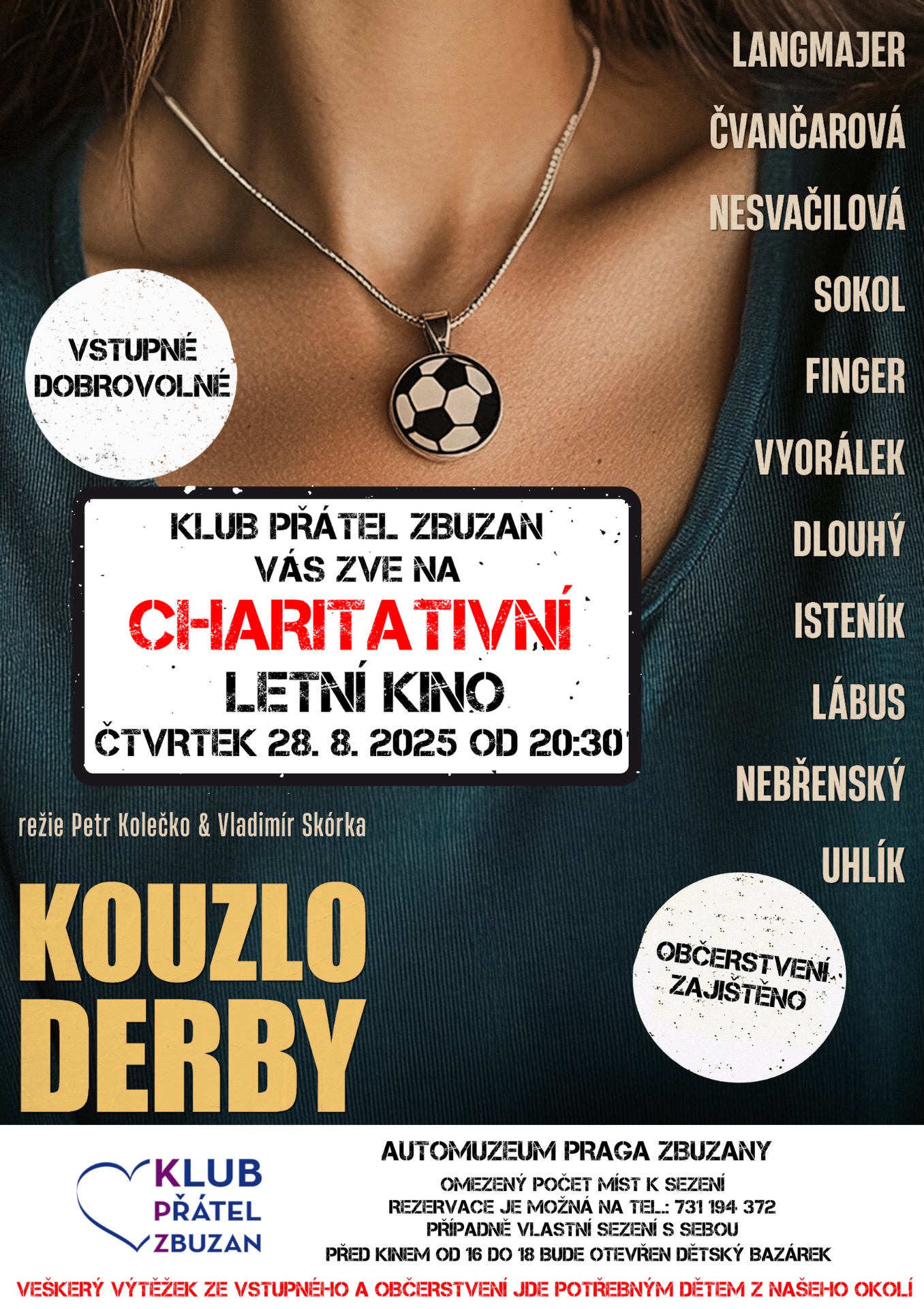 Srdečně zveme na Letní kino. Budeme promítat nový film Petra Kolečka Kouzlo derby. Vstupné je dobrovolné a výtěžek z něj bude v plné výši použit na charitativní účely. Nákupem občerstvení taktéž podpoříte náš spolek. Těšíme se na Vás v 20:30 v Pragovce!